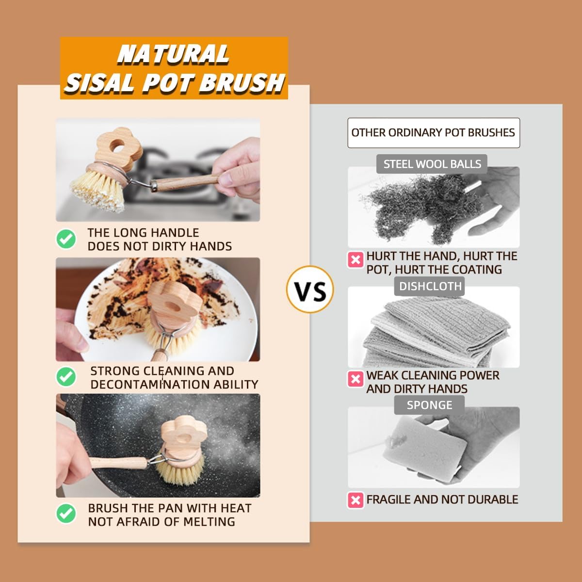 This all-natural dish brush is designed to bring both efficiency and care to your kitchen cleaning routine. Featuring high-quality sisal bristles that strike the perfect balance between strength and gentleness, it works effectively on a wide range of surfaces without causing scratches or damage.